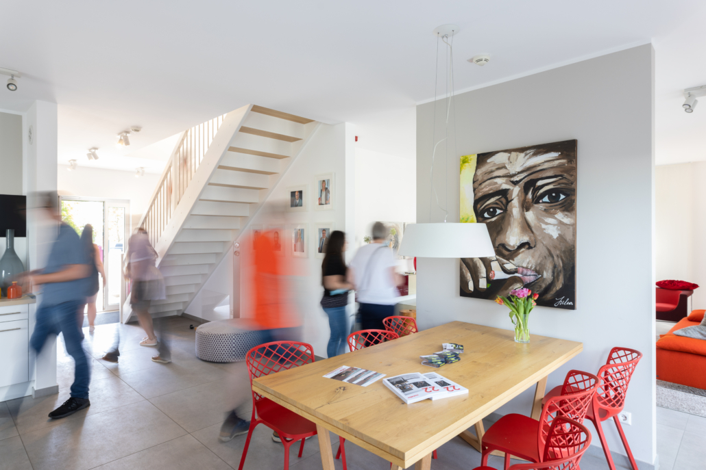 Der DFH Erlebnistag bietet ein abwechslungsreiches Programm: Die Vertriebslinien der DFH GRUPPE präsentieren sich vor Ort und öffnen ihre Musterhäuser. Langjährige Partner der DFH GRUPPE zeigen ebenfalls Präsenz und informieren rund ums Thema Hausbau. Geführte Touren durch die Produktionshallen ermöglichen spannende Einblicke in die Fertigung moderner Häuser aus Holz – von der Planung bis zur Umsetzung.